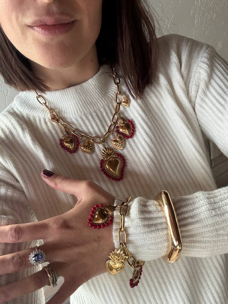 Aggiungi un tocco di carattere e simbolismo al tuo stile con queste splendide collane caratterizzate da sacri cuori pendenti.