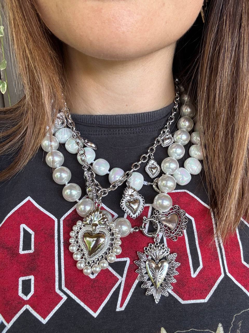 Ogni collana è caratterizzata da pendenti a cuore impreziositi da lavorazioni in rilievo e cornici decorative.