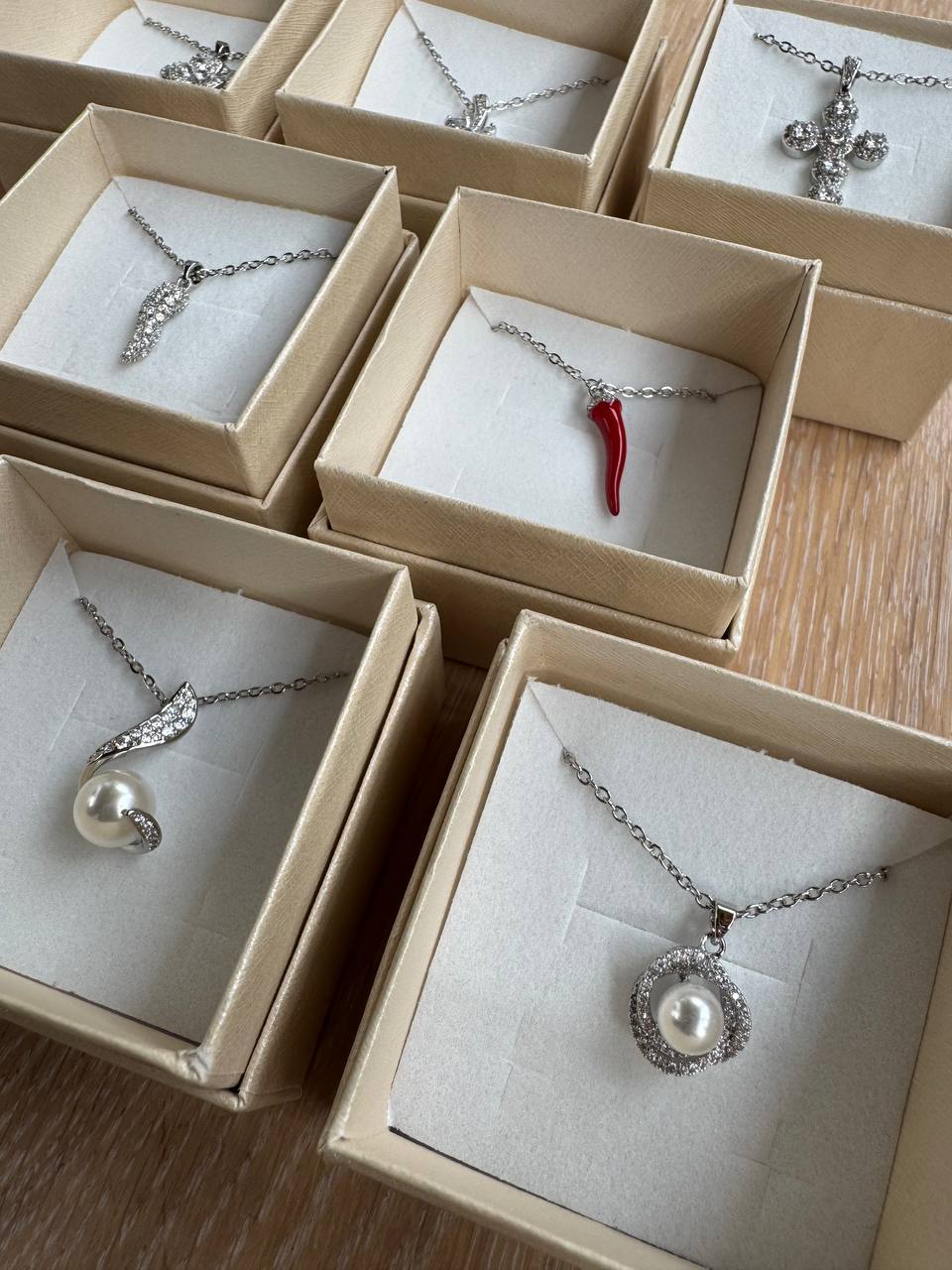 Delle bellissime collane girocollo in acciaio inossidabile con ciondoli .