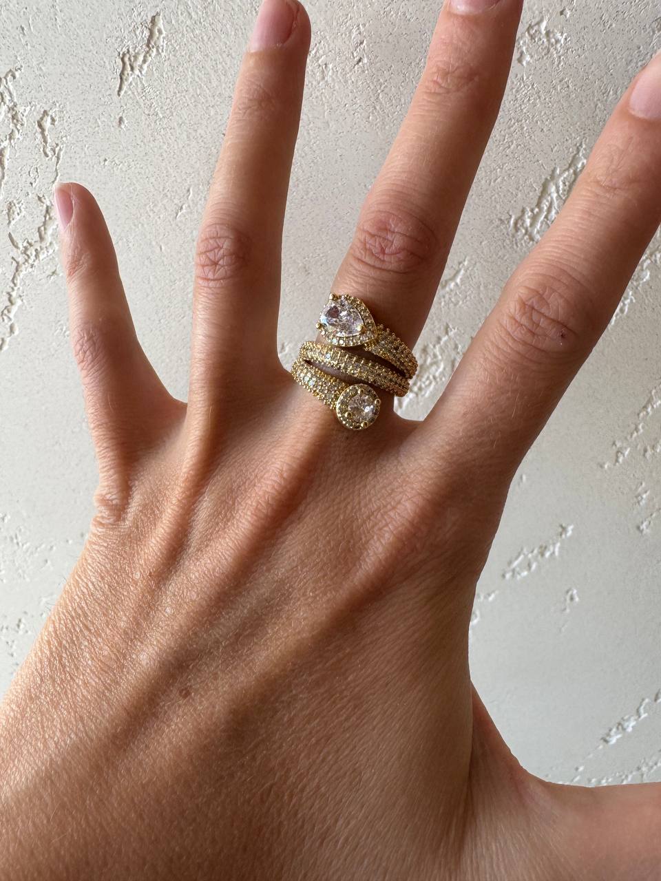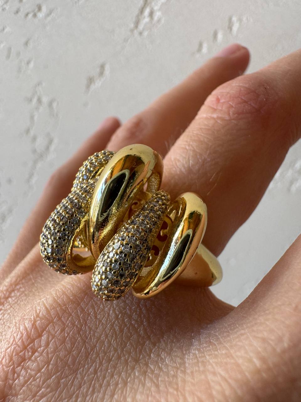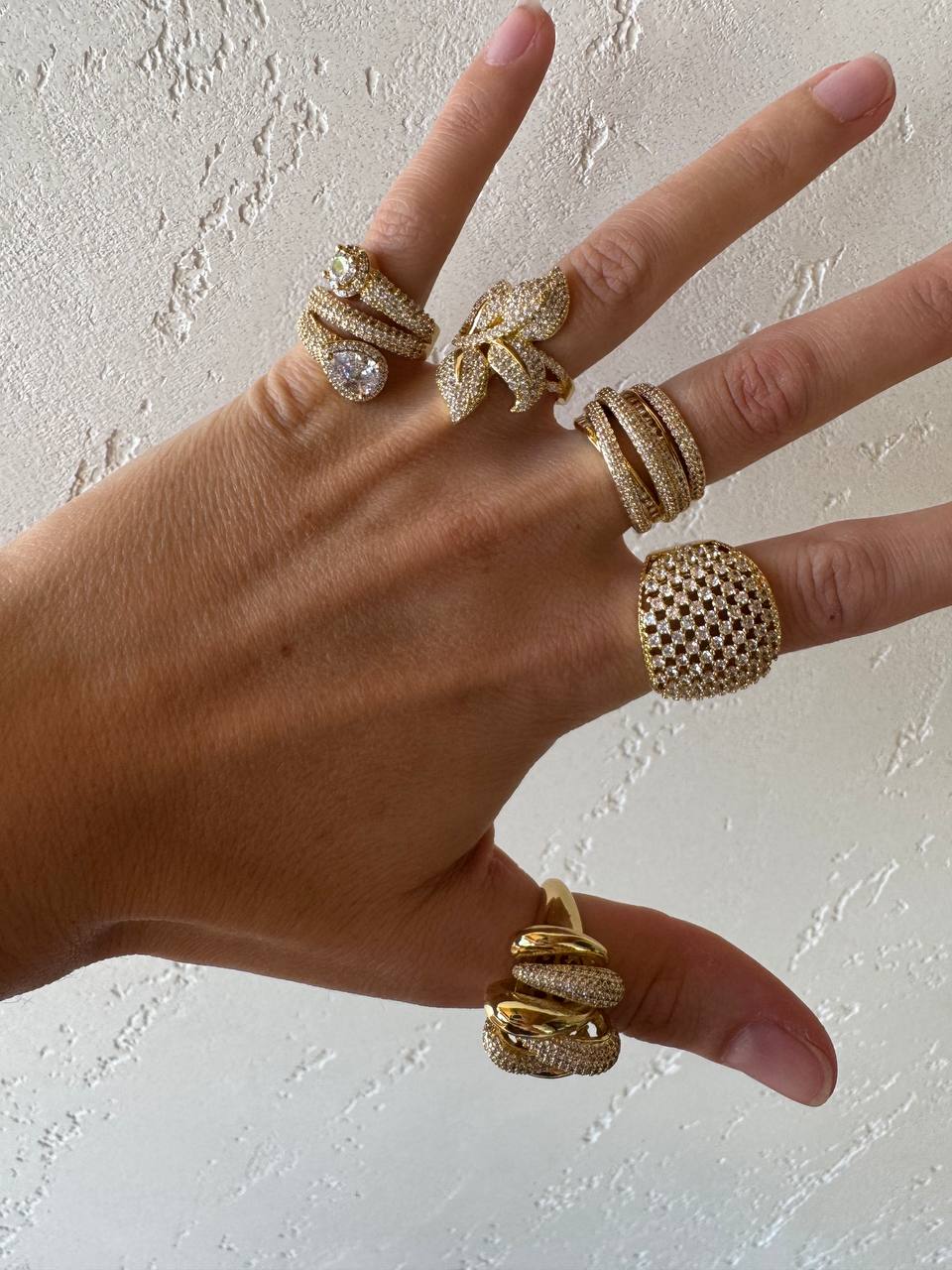 Una linea di anelli in ottone dorato e strass di carattere, di impatto , perfetti per chi vuol farsi notare.