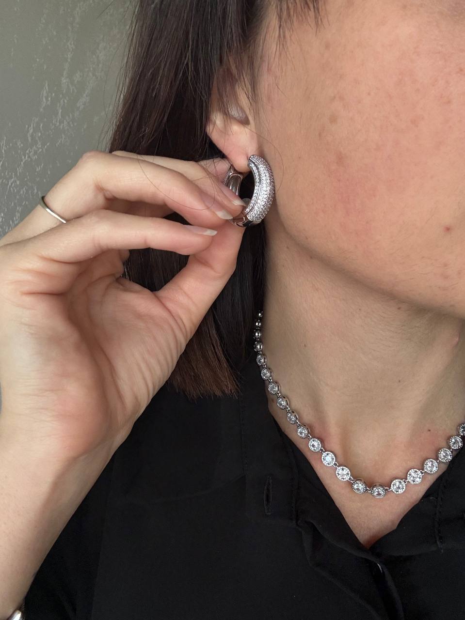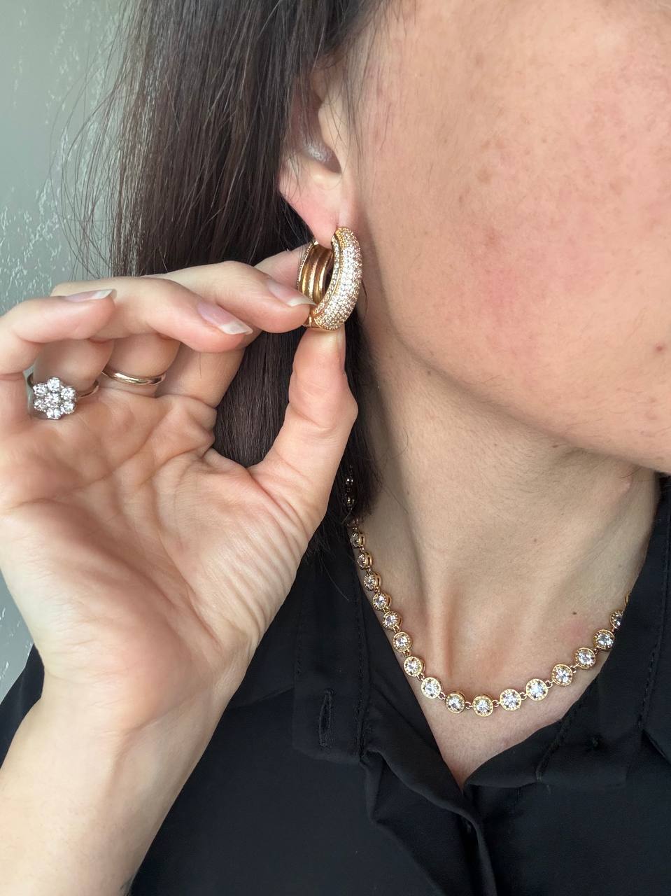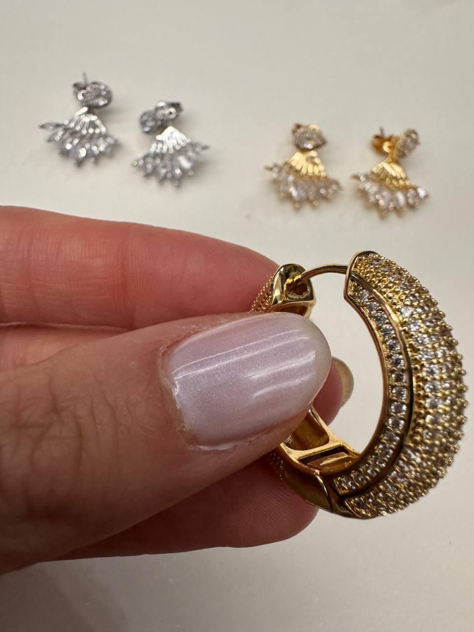 Leggeri ed eleganti , non è il classico orecchino a cerchio , ma dona un tocco di luce con i gli strass nella parte anteriore.
